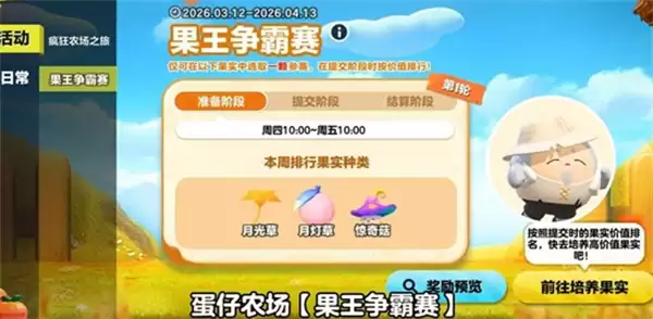 果王争霸赛整体赛程为3月12日至4月13日,为期约一个月,给予农场主充足的培育时间。参与流程非常简单:1. 每日登录《蛋仔派对》疯狂农场;2. 根据每轮公布的果实类型进行重点种植;3. 通过施肥、管理等手段全力提升果实品质等级;4. 在每轮评选期内及时提交成果参赛。按照步骤操作,你就能顺利加入这场田园对决。