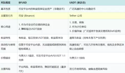 场景专一,流通受限:BFUSD的设计初衷是提升合约交易者的资金效率,实现“保证金同时生息”。因此,它被严格限定在币安合约系统内使用,不具备像USDT那样的外部流通和支付功能。