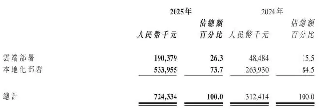 智谱2025年本地化部署收入为5.34亿元,较上同期的2.64亿元增长102.3%,此项增长主要得益于集团通过持续迭代提升模型智能上界,模型通用性的增强和市场的需求维持强劲。