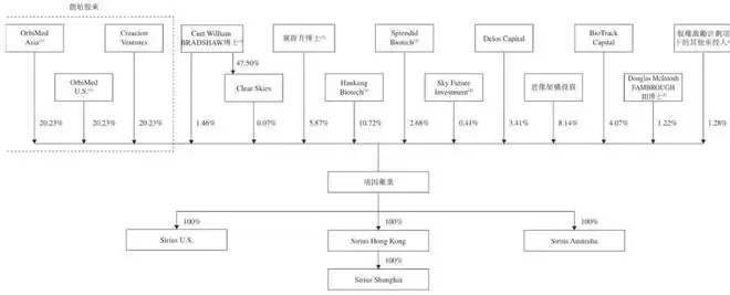 IPO前,OrbiMed Asia、OrbiMed U.S、Creacion Ventures分别持股为20.23%,Curt William BRADSHAW博士持股为1.46%。