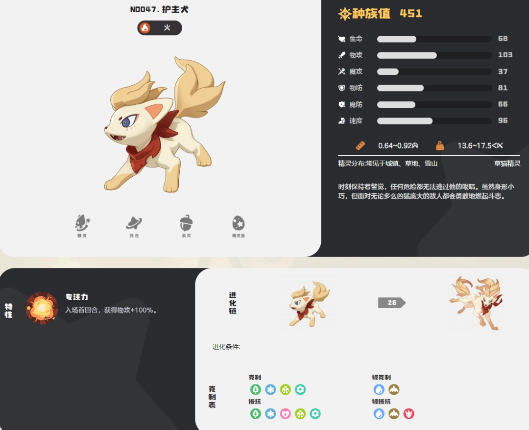 护主犬,这只活跃于洛克王国世界中的经典宠物,最鲜明的特征就是其始终保持的高度警觉性。无论何时,它都像一名忠心耿耿的卫士,任何细微的环境变化或潜在动静都难以逃脱它敏锐的感知。玩家们切勿因其娇小可爱的外形而低估它的实力;恰恰相反,一旦主人遭遇危险或面临挑战,护主犬体内沉睡的勇气与忠诚便会瞬间迸发。无论对手多么强大或体型悬殊,它都会在第一时间点燃战斗意志,毅然决然地挺身而出,守护在训练师身前,生动诠释了“护主”之名的真正含义。