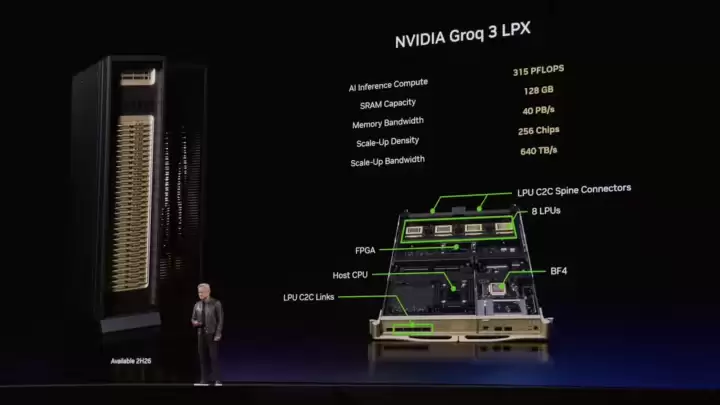 此外,平台还集成了Groq 3 LPX推理加速机架,其内部搭载了256个LPU处理器。当它与Vera Rubin平台深度结合后,每消耗一兆瓦电力所能驱动的AI推理吞吐量,最高可以提升35倍。这种能效比的革命性进步,对于构建绿色、经济的大型数据中心至关重要。