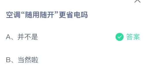 支付宝蚂蚁庄园2026年4月2日今日正确答案一览 1、今日题目:空调“随用随开”真的更节能省电吗? A、并不是这样 B、当然啦 2、今日正确答案:并不是 3、答案解析与省电知识科普 许多人都相信“空调短暂不用时就关掉,随用随开更省电”这个说法,但实际上这是一个普遍存在的省电误区。真实情况是,频繁开关