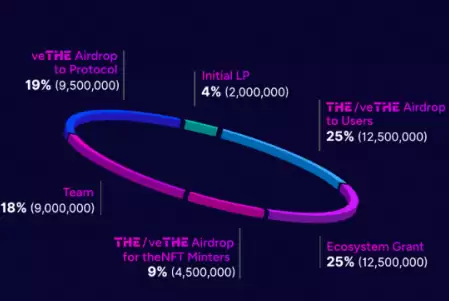 - 团队分配(18%):以veTHE和长期归属方式发放,确保团队与社区利益长期一致。