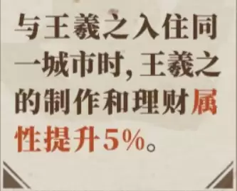除了自身技能,她的专属“羁绊”效果同样极具战略意义。当卫铄与王羲之同处于一座城市时,可无条件为王羲之的“制作”与“理财”两项属性分别提供5%的固定加成。这意味着,若将这对师徒组合 strategically 部署在苏州这类商业任务繁重、或特色商铺林立的城市,便能形成“1+1>2”的协同效应,无论是加速高级工艺品制作,还是提升整体铜钱收入,都能获得立竿见影的效果。