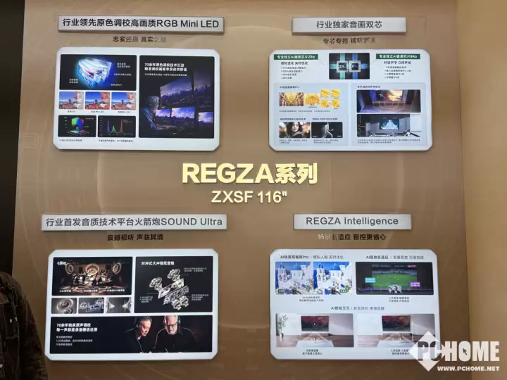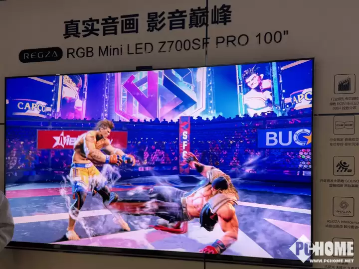 而此次东芝展台真正的核心看点,则是其中日同源REGZA家族全新推出的ZX与700系列电视,它们均搭载了新一代RGB Mini LED显示技术与火箭炮音响系统。这两大王牌技术的融合,共同定义了什么才是真正的“身临其境”家庭影院级沉浸体验。