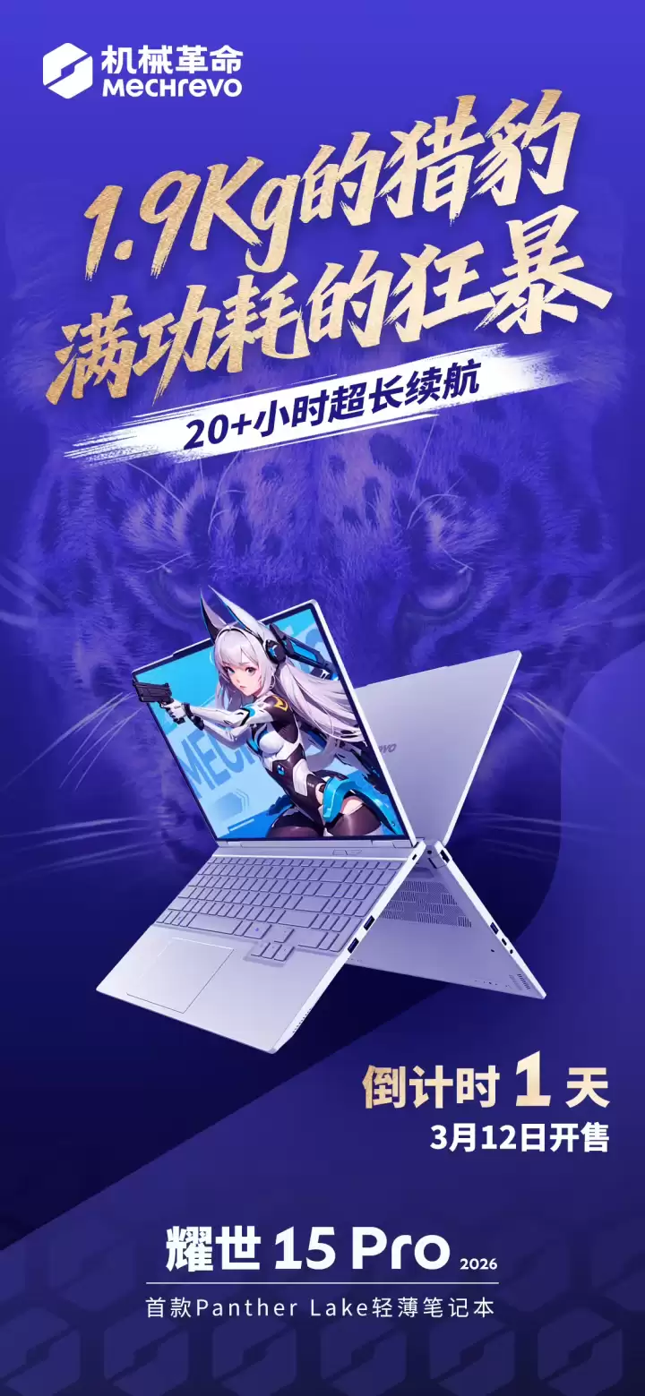 在笔记本电脑市场,强劲性能与轻薄便携往往难以兼得。然而,3月12日上市的机械革命耀世15 Pro 2026,正试图打破这一固有格局。作为全球首批搭载英特尔下一代Panther Lake移动平台的轻薄型笔记本,它以全金属机身、1.9kg的轻量化设计,实现了高达115W的满功耗显卡性能释放,并标榜续航时间可长达20小时,有望重新树立高性能便携笔记本的行业新标杆。