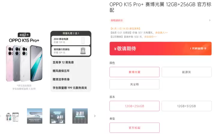 OPPO K15 Pro系列4月1日发布:存储配置引热议 OPPO官方已正式宣布,K15 Pro系列新品将于4月1日正式发布。值得注意的是,尽管尚未正式亮相,该系列的两款新机目前已在OPPO官方商城开放预约。然而,官网配置信息揭示了一个值得关注的现象:全系列目前仅提供12GB运行内存(RAM)版本,