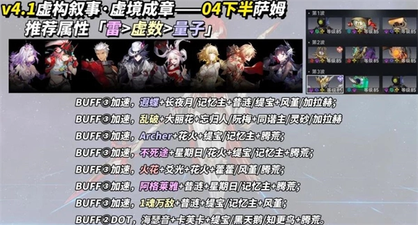 下半区推荐优先利用的弱点属性为:雷 > 虚数 > 量子。需注意第三波出现的助手涂鸦赶稿拥有较高的风属性抗性。
