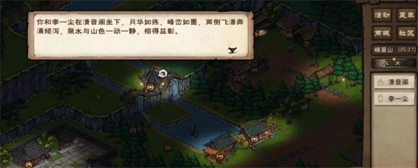 8、游戏内时间切换至夜晚。前往峨眉山坐标(35,27)触发后续剧情,随后赶到坐标(45,12)处,经历剧情后会进入一场战斗。战斗胜利后的对话中,选择「赞同」可以再次提升李一尘的好感度。