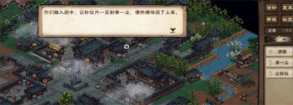 1、首先,你需要已经在游戏中招募了随从李一尘。前往成都城地图,在城内闲逛即有概率自动触发奇遇序幕。触发后,前往坐标(30,8)找到一位流动商贩,对话时选择「我来买吧」选项,此举可提升李一尘的好感度。随后,移动至(27,8)位置,与李一尘本人进行对话推进剧情。