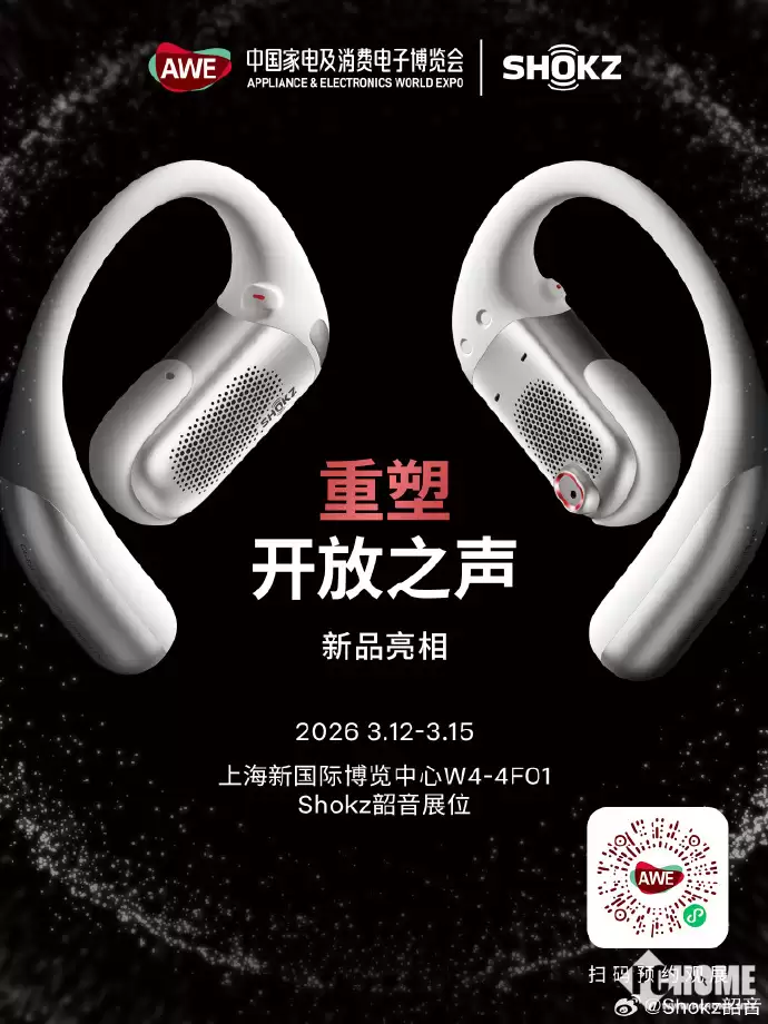 3月12日至15日,中国家电及消费电子博览会(AWE 2026)在上海新国际博览中心举办。全球领先的开放式耳机品牌Shokz韶音以 "重塑开放之声 "为主题,携开放式滤噪新物种OpenFit Pro等产
