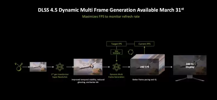 英伟达DLSS 4.5六倍帧生成3月31日上线,RTX 50系专属