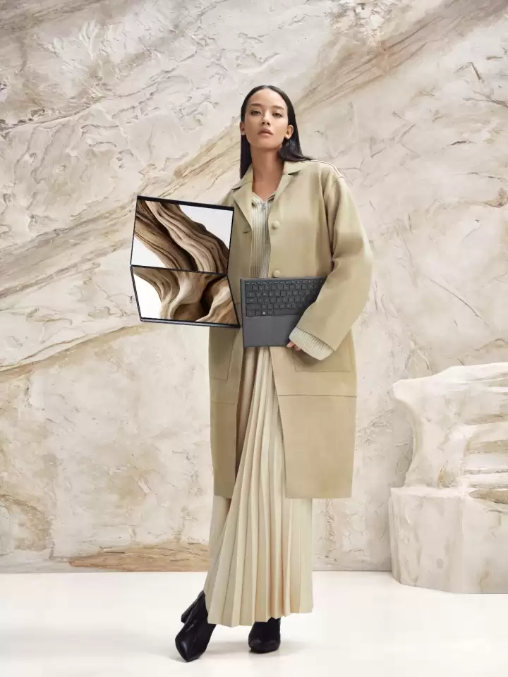 一款定位于高端移动创作的生产力工具,必须在性能与便携之间取得完美平衡。华硕灵耀14双屏2026深谙此道。其机身采用了高强度的陶瓷铝镁合金材质,不仅赋予了产品坚固耐磨、触感温润的优雅质感,更有效抵抗了指纹沾染。在最为便携的虚拟键盘模式下,其重量被精妙地控制在约1.35公斤,轻薄程度超越许多单屏笔记本,极大减轻了日常通勤与差旅的携带负担。