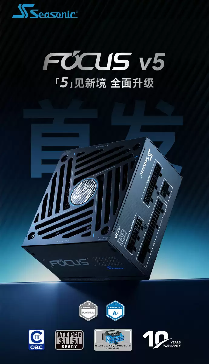 海韵 FOCUS v5系列电源3.16日首发,标配ATX 3.1规范