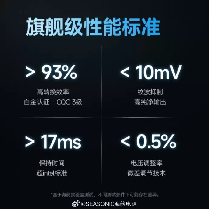聚焦核心性能,海韵FOCUS v5系列电源的转换效率突破93%,这一优异表现使其成功获得了严苛的Cybenetics白金能效认证,同时也符合中国质量认证中心(CQC)三级能效标准,能效水平稳居市场前列。