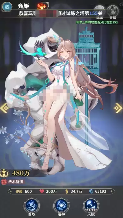 阵容的主要输出职责由甄姬承担。她的群体技能同样拥有85%的基础伤害系数,且成长潜力巨大。达到9星后,关键机制“洛神”被激活:当生命值高于70%时攻击,可获得一层“洛神”状态,若行动后未受击,甚至可额外行动一次。升至10星,“洛神”最多可叠加六层,每层均能在生命健康时为其伤害提供20%的额外加成。这意味着,只要保证甄姬的血线安全,她就能化身为持续的群体炮台,成为阵容最核心的伤害来源。