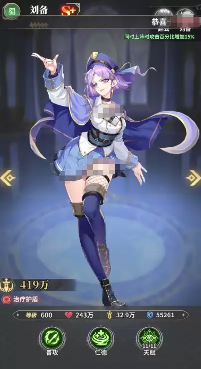 最后是刘备,他堪称诸葛亮的最佳辅助搭档,专注于提供治疗与防护。他的技能能为全体友军恢复生命值,同时施加一个基于自身攻击力计算的强力护盾,并附带免伤效果。该护盾的数值相当扎实,能极大程度地提升整个队伍的生存能力与容错空间,为前排输出角色创造更安稳的攻击环境。
