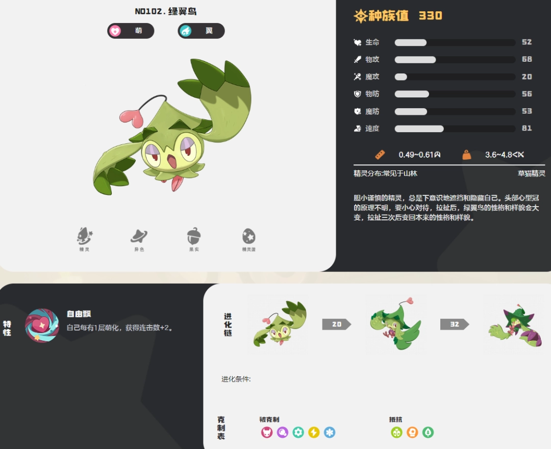 作为洛克王国中知名的谨慎型宠物,绿翼鸟以其害羞胆小的性格著称。它习惯性地隐藏自己,表现出对周遭环境的高度警觉。其头部独特的心形冠羽是显著特征,关于它的具体功能,目前尚未有明确的官方定论,但引发了众多小洛克们的猜测。需要特别注意的是,这个冠羽非常敏感——任何试图拉扯它的行为都会立即激怒绿翼鸟,导致它的脾气和外貌发生急剧变化。更令人惊奇的是,这种形态变化遵循着一种有趣的“三局两胜”模式:当你第三次触碰它的冠羽后,它会神奇地恢复到最初的模样,仿佛一切未曾发生。