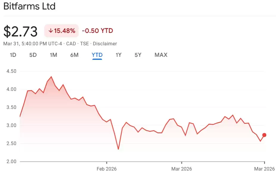 BITF在2026年内的股价走势。来源:谷歌财经