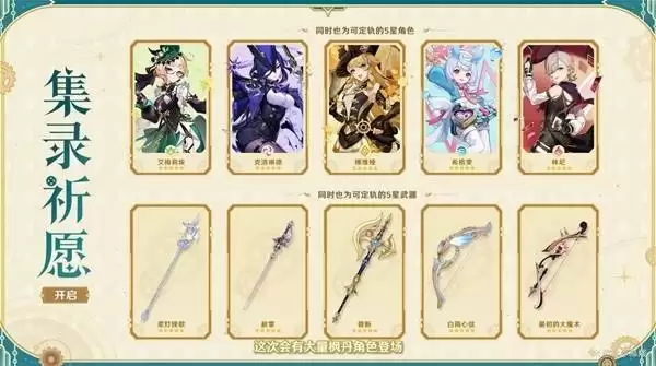 新版本的祈愿卡池分为上下半场,具体阵容如下: