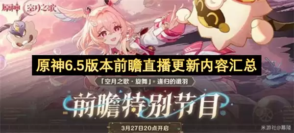 《原神》「空月之歌·旋舞·逢归的谶羽」版本前瞻直播定档4月8日,新内容一览 《原神》玩家的新期待来了。官方已经敲定,全新版本「空月之歌·旋舞·逢归的谶羽」的前瞻特别节目,将于4月8日正式开播。更有意思的是,这个备受瞩目的新版本,也会在同一天同步上线。 说起这次直播,其实是玩家规划后续游戏进度的绝佳窗