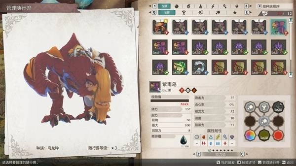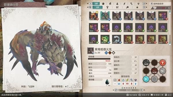 该方案以主角随从“擂斯”为核心,搭配5只无属性“紫毒姬”作为主力。需要说明的是,该架构具备相当的灵活性。由于基因因子可以自由组合与移植,队伍的核心怪物并非固定不变,玩家完全可以根据个人偏好进行替换。那么,为何最终推荐使用紫毒姬呢?核心原因在于其综合性能的优越性:在试玩版本中,紫毒姬的基础面板属性在所有非古龙种怪物中名列前茅。与同期热门选择“棘龙”进行对比,紫毒姬的必杀技额外附带攻击力强化效果,这一实战增益使其成为更优选项。