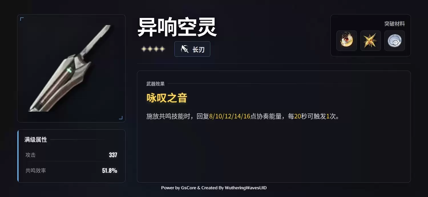 桃祈的武器选择十分明确:四星武器「异响空灵」是当前版本近乎唯一的最优解。其核心价值在于,提供的共鸣效率加成高度契合桃祈的技能机制。更为关键的是,武器的副词条“协作能量”能有效弥补桃祈自身协奏效率较慢的缺陷,实现“缺什么补什么”的精准强化,实战提升显著。