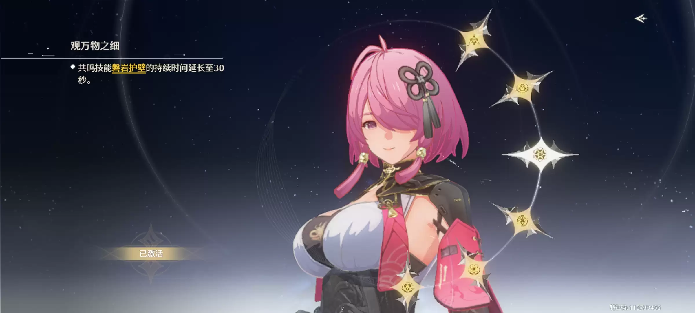 五链:这是一个至关重要的机制补强。不仅提升“盾反”技能的伤害,还能在发动盾反时回复共鸣能量,从根本上改善了桃祈的技能循环节奏与战场功能性。