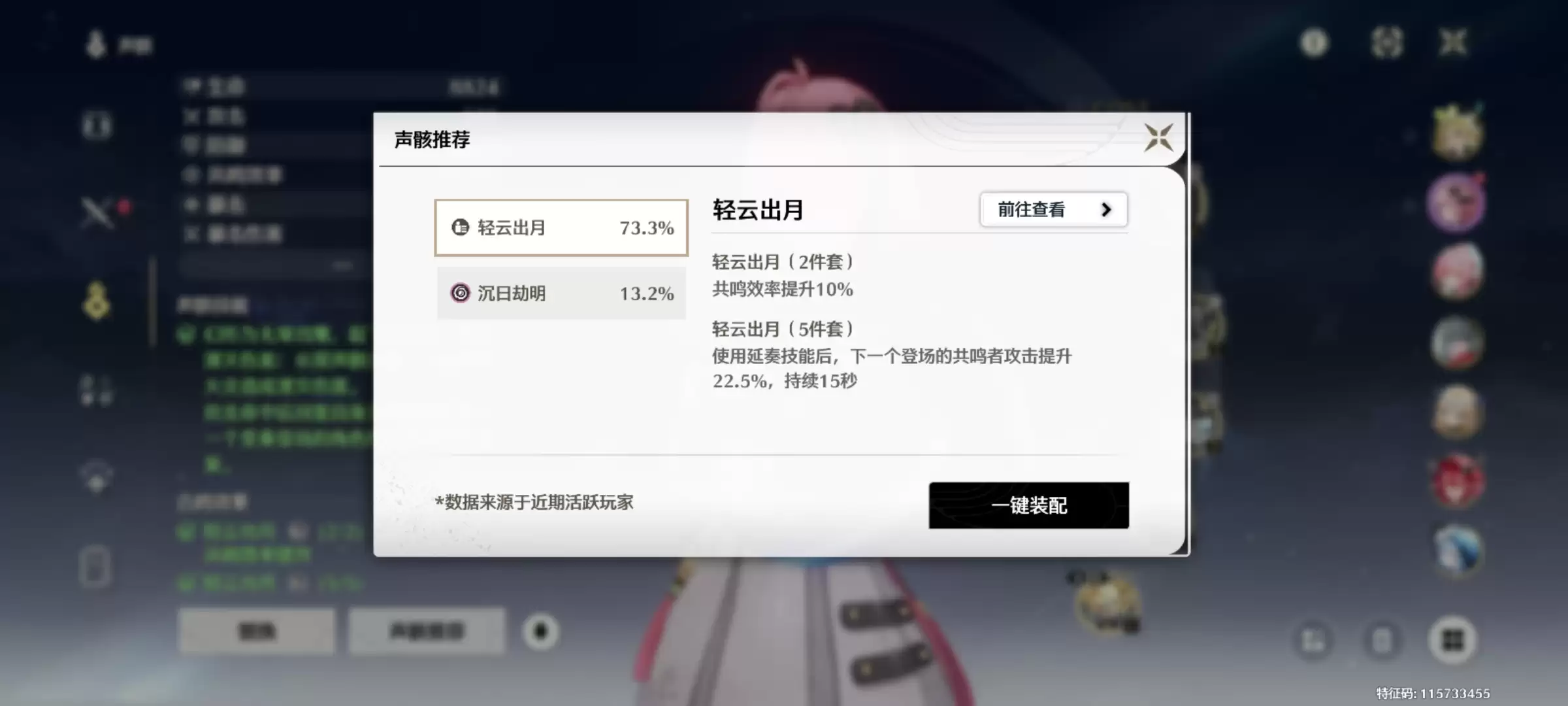 在声骸套装搭配上,「轻云出月」五件套是公认最适配、收益最稳定的选择。这套装能为桃祈提供持续且强力的辅助增益效果,是她发挥团队作用的基础保障。