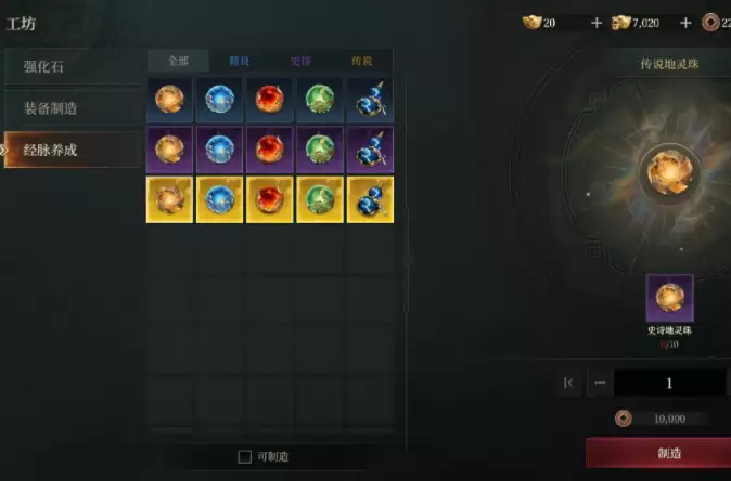 工坊的妙用远不止于装备制造与强化石合成。第三个核心功能——“经脉养成”,是另一个消化冗余资源、显著提升角色实力的重要系统。你可以将各种品质的养成道具在此合成为“灵珠”,用于激活和升级角色的经脉穴位,从而获得永久的属性加成。