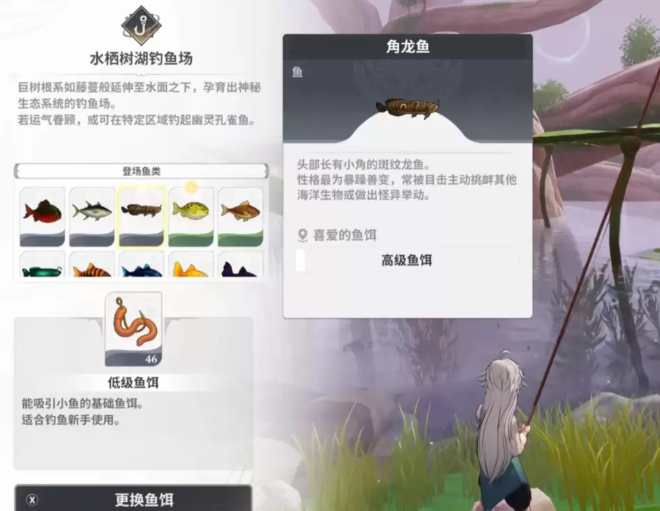 角龙鱼,以其头部独特的角状结构而闻名,通常更具攻击性或警觉性。对于希望快速获取的玩家,推荐前往森林关卡的普通钓鱼场;若你偏爱在静谧环境中探索,那么水栖树湖钓鱼场的深层水域将是更好的选择。无论在何处,它都是该水域食物链顶端的生物之一。