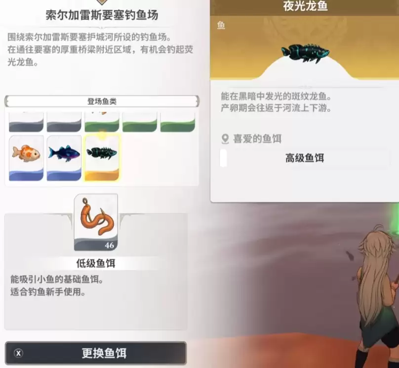 随着剧情推进,你会遭遇七龙鱼中最具挑战性的一种——夜光龙鱼。它被广泛认为是《七大罪起源》中最难钓到的鱼,只出现在危机四伏的索尔加雷斯要塞钓鱼场。只有成功抵达要塞深处,你才有机会尝试钓取。