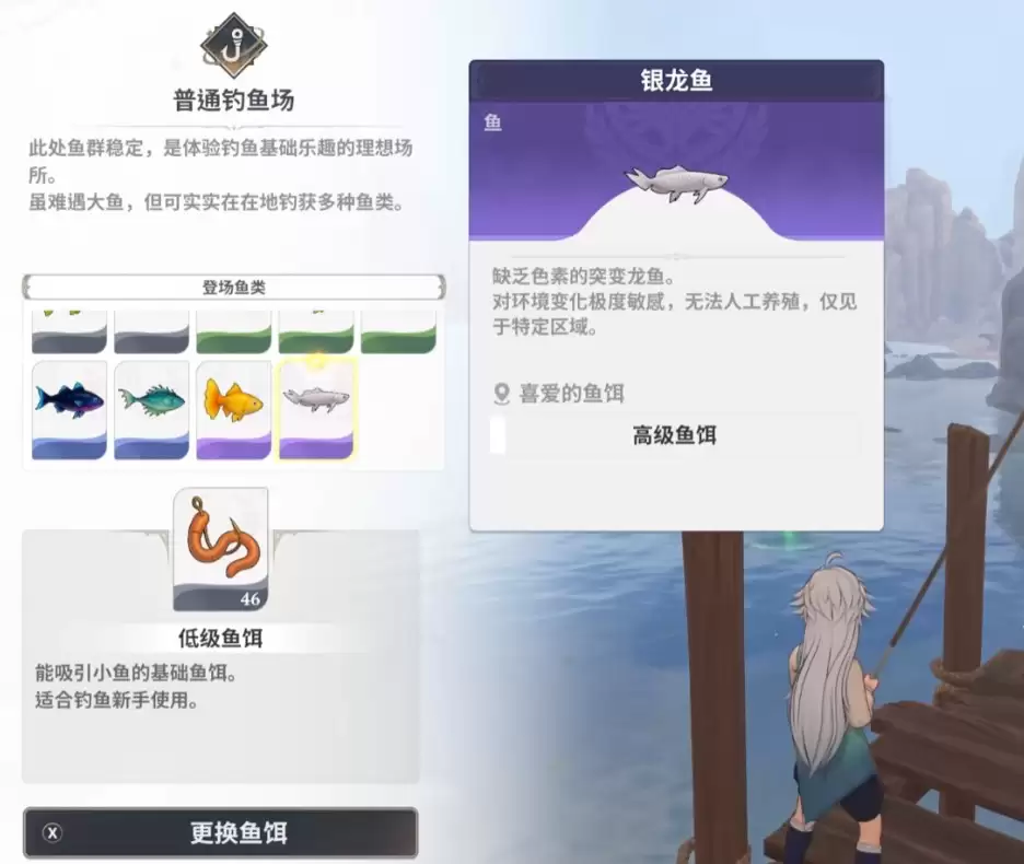 银龙鱼以其如纯银般闪亮的鳞片而著称,在日光下会反射出夺目的光彩。它是沿海区域珍稀的渔获,也是后期合成某些高级饰品或任务物品的必备材料。