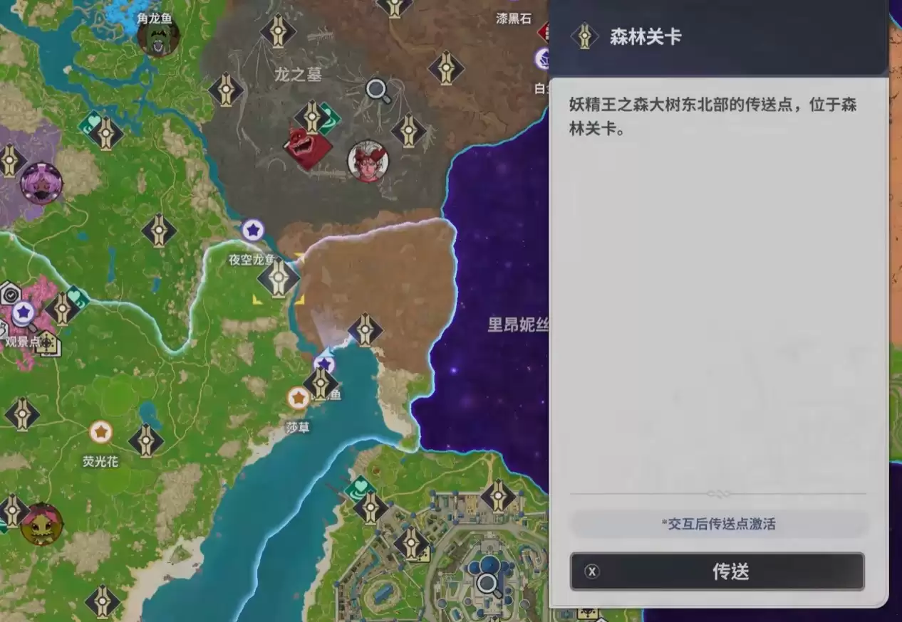 同样将森林区域作为栖息地的还有夜空龙鱼。它与角龙鱼共享森林普通钓鱼场的刷新点,但习性截然不同。其鳞片色泽深邃,带有如星空般的闪烁光点,因此在夜晚进行垂钓成功率会显著提升。这片区域在中前期即可到达,地形熟悉,非常适合在完成森林主线任务的途中顺道收集。