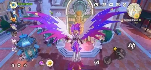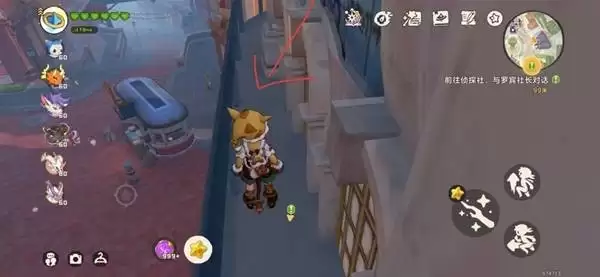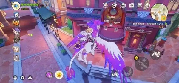 《洛克王国:世界》极品美味仓库位置全攻略 领取任务后,我们需要根据地图上标记的红色箭头指示,从当前位置出发。首先,离开任务起始点,按照方向指引前行。 走出初始区域后,请继续跟随红色箭头的轨迹飞行,不要停留,确保方向准确。 向前飞行至一处带有屋檐的建筑附近,这里是一个重要的路线转折点——请务必在此处向
