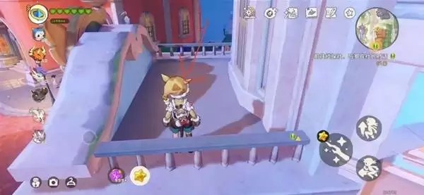 首先前往街区中部的冰激凌小摊。转身抬头,锁定其后方一栋三层建筑的顶部窗台。你需要通过旁边的楼梯攀爬至楼顶,或是利用角色的二段跳跃能力,最终在窗台的外檐上取得这颗水晶。具体方位与实际效果请参考以下对比截图。