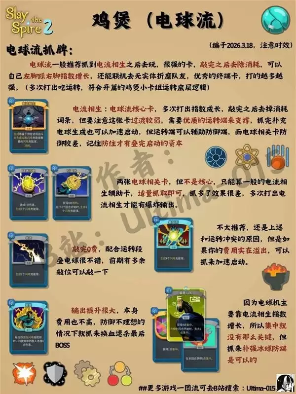 闪电球速攻流:这是最常见且高效的构筑之一。核心思路是利用“静电释放”、“球状闪电”等卡牌快速生成闪电球,配合“聚焦”提升单球伤害,实现稳定的群体输出。成型后清场能力极强,尤其擅长应对多目标战斗,是推图效率极高的选择。