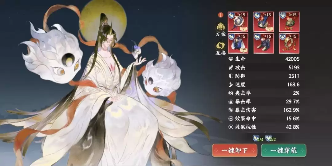 常曦的伤害完全建立在“闪避成功-积累灵力-释放技能”的循环之上。因此,提升闪避概率与单次反击伤害是关键。爆伤与穿透套装的组合能将她每一次反击的伤害潜力最大化。神器混元金斗直接提供闪避概率加成,让核心循环更加稳定,有效加速其技能释放频率。