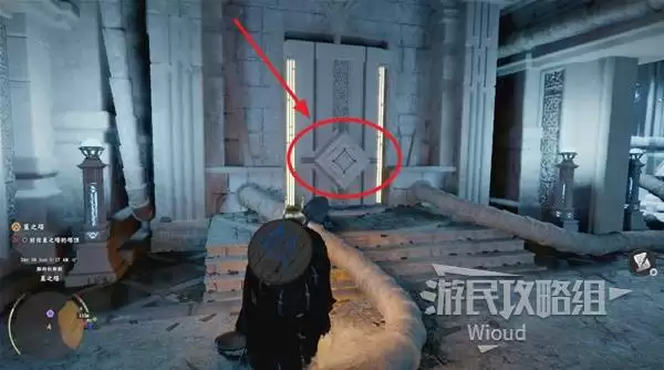 第一步是收集石印。先不必理会大厅中央的复杂机关。首先进入左侧的房间,找到右侧门上的可移动板块,将其推开后即可获得第一枚关键道具——“刻有神秘图案的石印”。