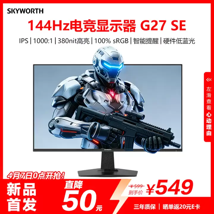 在竞争激烈的显示器市场中,“甜点级”产品总能以极高的性价比吸引众多目光。近期,创维正式推出了G27 SE显示器,将27英寸搭配144Hz刷新率的主流配置价格下探至549元,精准瞄准了预算有限但渴望高刷新率流畅体验的用户群体。这款产品定于2026年4月7日发售,无疑为入门级高刷显示器市场注入了新的活力。