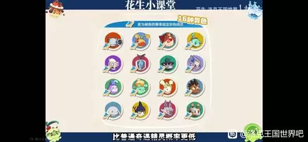 首先,新手训练师最常陷入的误区便是误判异色精灵的范围。请务必明确:在当前游戏版本中,官方认定的标准异色精灵仅有下图所示的16种基础类型。此外,还需计入战令专属奖励的两只以及马年限定精灵“小马”。总计共19种,除此名单之外的精灵均不属于异色范畴。认清这一点,是高效收集的第一步。