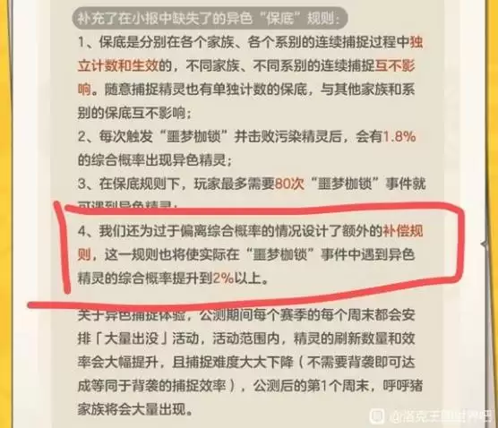大量实战数据表明,当某只精灵触发满额保底后,在紧接着的20次“噩梦”难度抓捕次数内,几乎必然会遭遇一只异色精灵。这一规则可以被巧妙运用,专门用于“卡”赛季限定的奇遇类精灵,即上文提到的8只特殊赛季异色。