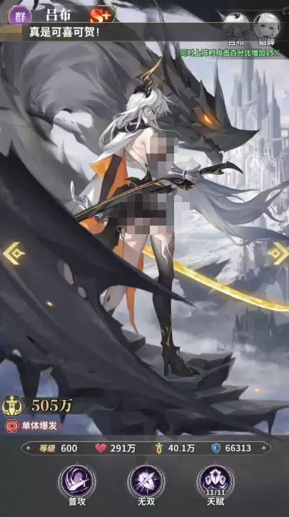 吕布在阵容中扮演着首席物理爆发的角色。她的技能专注于高额单体伤害,若未能直接击杀目标,还可削减其怒气值。随着战斗回合的积累,吕布的伤害最高可获得200%的恐怖提升,单体斩杀线极高。其独特机制在于,当我方队友累计释放4次技能后,吕布会额外进行一次伤害率为100%的追加普攻。需要注意的是,这次追击不会回复怒气,需要在输出节奏上稍作权衡。
