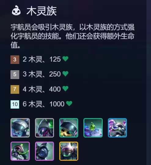 (3)木灵族: 吸引2个木灵伙伴,全体木灵族英雄获得125点额外生命值。