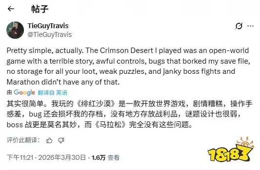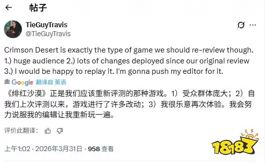 回顾最初的评测,Saltzman曾严厉指出初版游戏在叙事节奏、战斗操作反馈、偶发的存档问题以及部分关卡设计逻辑上存在明显不足。但也正是基于这种深度体验,他深切认识到,在当今游戏持续服务与快速进化的行业背景下,对经历重大内容迭代的作品进行重新评估,已成为一项专业且必要的工作。而《红色沙漠》恰好满足了几个核心重评条件:拥有庞大的玩家社群基础、游戏质量通过更新实现了显著提升、且评测者本人对重返游戏持开放态度。综合以上考量,他表示将正式向IGN编辑部提交重评提案。当然,需要说明的是,截至本文发布,IGN官方尚未就此发布任何确认声明。