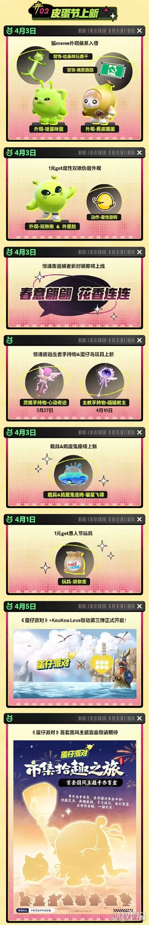 总而言之,4月3日开启的「揪出哈基咪」版本,标志着一场席卷全岛的风暴正式来袭。外星喵星人势力强势登陆,一场关乎颜值与阵营的“蕉皮喵蛋”与“哈基咪蛋”之间的喵咪大战,一触即发。各位蛋仔,准备好了吗?