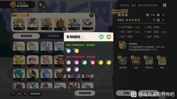 在《洛克王国世界》的进阶对战中,一套成熟的队伍体系是取胜关键,它能最大化每只精灵的战术价值。本文将深入解析一套高效的地属性/武斗属性(简称“地武队”)配置方案,分享其核心打法与实战运营思路,助力各位训练师突破瓶颈,高效上分。