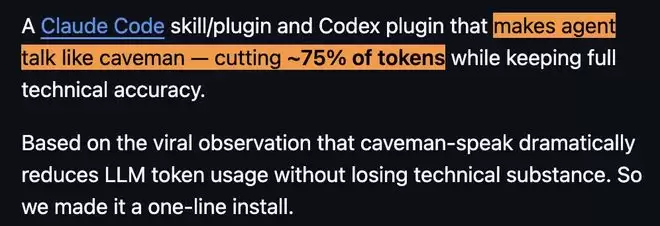它的核心思路是让智能体像「原始人」一样开口,在不牺牲技术准确性的前提下,把输出压缩到极致,并声称可将token消耗降低约75%。