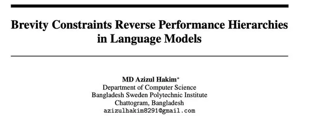 2026年的论文《Brevity Constraints Reverse Performance Hierarchies in Language Models》则更进一步指出: